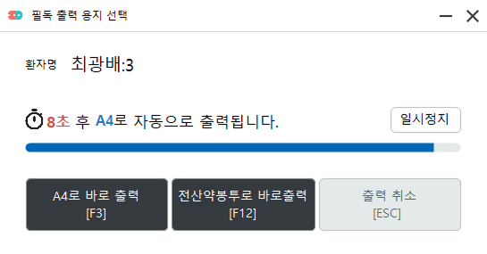 - 선택한 조건 중 하나 이상을 충족하면 전산 약봉투 용지가 자동 출력됩니다.