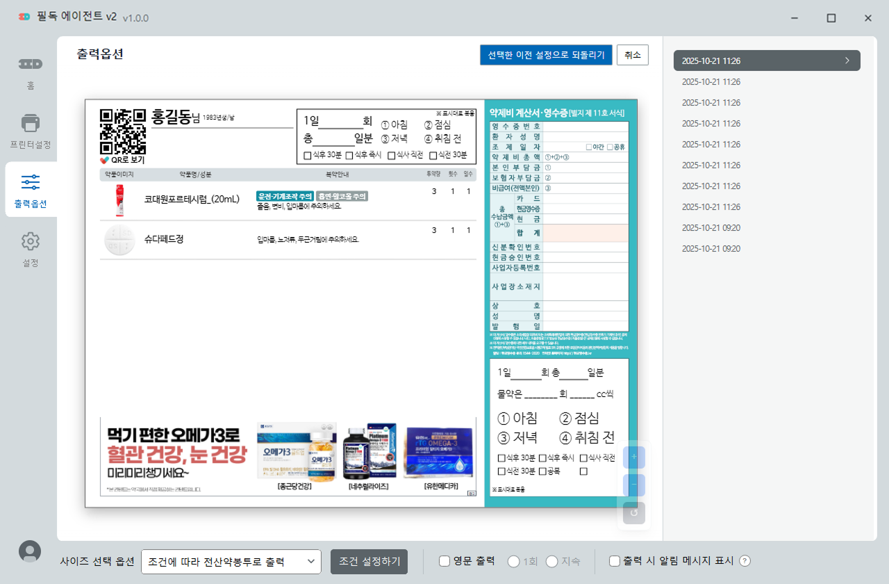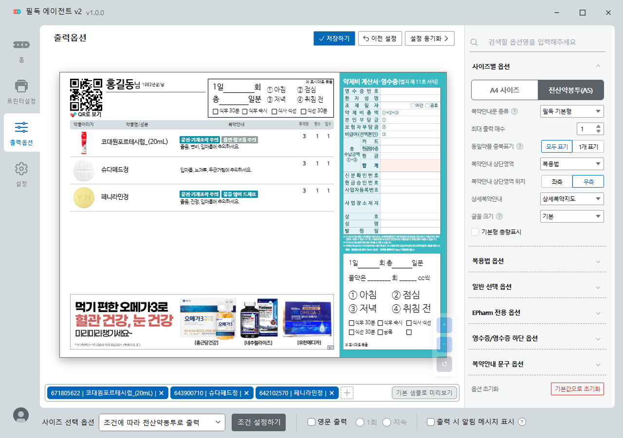 복약안내에 출력될 옵션을 설정할 수 있습니다.