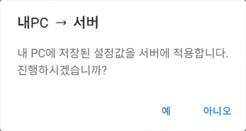 내PC → 서버 : 내PC에 저장된 옵션을 서버에 저장합니다.